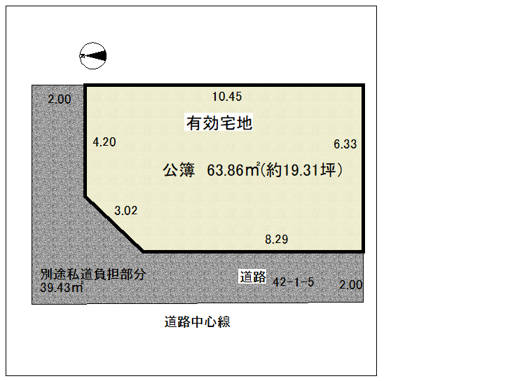 土地 63.86㎡(19.31坪) 別途私道負担部分39.43㎡