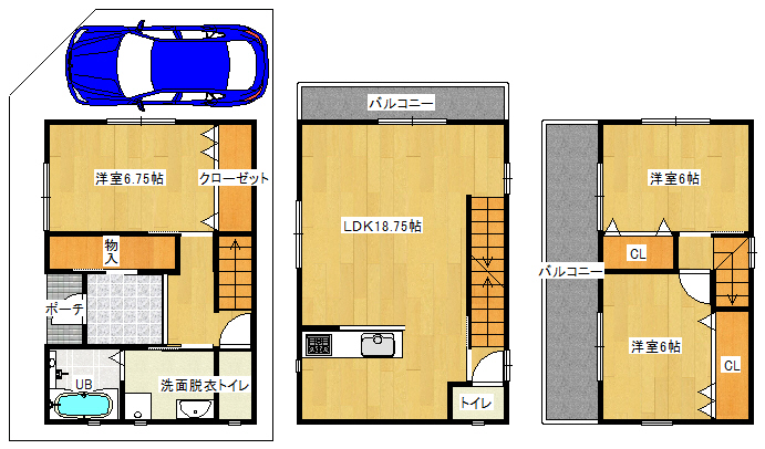 3LDK3階建てプラン(建物価格2,100万円)あり